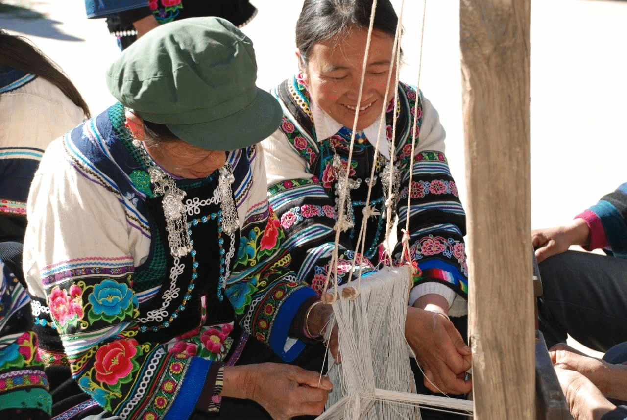 以“非遗活态传承”筑牢文化根脉。在南华县文化馆非遗传承中心,各级非遗项目的文件和资料整齐陈列,彝族火草纺织、根雕制作、镇南月琴等多项曾濒临失传的技艺,经系统性抢救,如今已形成“传承人+学徒+工坊+订单”的链条,带动地方就业。同时,南华县持续落实“非物质文化遗产进校园”工程,不仅联合学校开展文艺演出活动,更让地方文化扎根青少年群体——彝族打跳配合本土音乐《歌歇咧》登上小学课间操,优秀传统文化以轻盈姿态融入现代生活。