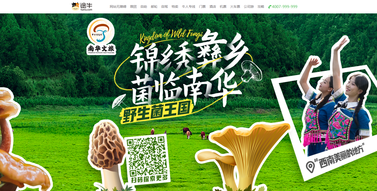 近日,南京途牛科技有限公司联合南华县推出的《锦绣彝乡&菌临南华》旅游产品正式上线途牛旅游网。