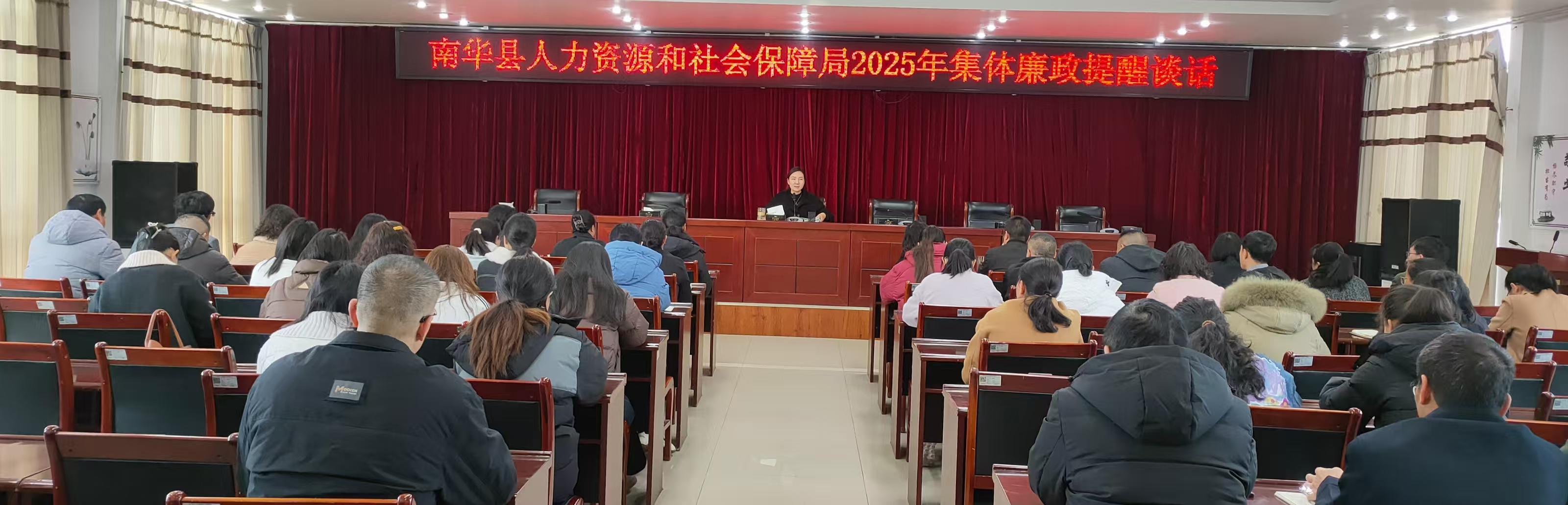 2月17日,南华县人力资源和社会保障局党组开展纪律作风集体廉政提醒谈话,要求全体职工以最硬的作风要求自己。一是要强化纪律意识。严格执行单位内部的各项规章制度,将纪律要求内化于心、外化于行,时刻以最严的纪律规范自己的言行。二是要端正工作态度。树立正确的价值观和职业观,对待工作要积极主动、认真负责。每一项任务都要以最高的工作标准全力以赴,杜绝敷衍塞责、推诿扯皮。三是要加强自我约束。培树良好的习惯和作风,以零容忍的坚定态度,杜绝酒驾醉驾赌博等违法行为,时常反思自己,守住底线、不越红线,拒绝参与任何时间、任何地点、任何形式的赌博活动,坚决做到“饮酒不开车、开车不饮酒”。