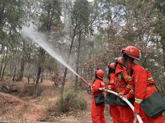 近日气温回暖、风险攀升,南华县应急救援队组织开展灭火拉动演练。