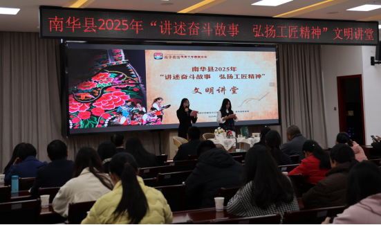 2月20日,南华县委文明办、县审计局、县税务局联合举办了以“讲述奋斗故事,弘扬工匠精神”为主题的文明讲堂活动。参加此次活动的有县委宣传思想文化工作领导小组成员单位工作人员及相关企业代表共60余人。