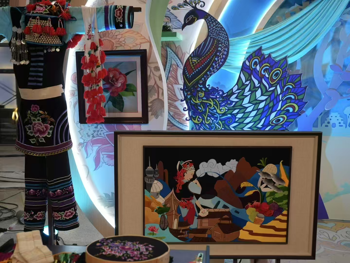 此次登上央视《2025年非遗晚会》的舞台,对于陈海燕来说是一次难得的展示机会。她精心挑选了自己的部分代表作品,包括具有传统特色的彝族服饰和独具创意的彝绣文创产品,带到了晚会现场。在晚会中,这些精美的绣品和服饰吸引了众多观众的目光,它们色彩鲜艳、图案精美、工艺精湛,充分展现了彝族人民的智慧和创造力。色彩艳丽,针法细腻,充分展现了彝族刺绣的精湛技艺和独特风格。