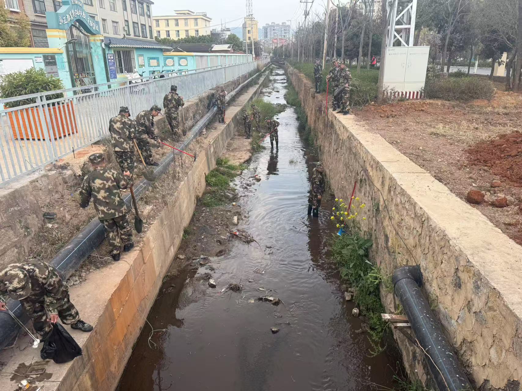活动现场,志愿者携带夹钳、垃圾袋等工具,对河道沿岸及卫生死角进行地毯式清理,重点清除塑料垃圾、枯枝杂物等,同步宣传环保知识,结合垃圾分类宣传,倡导绿色生活方式,动员群众参与清淤、岸线整治,营造全民护河氛围,持续践行长效管护机制,定期巡查河道整改问题,巩固整治成果。