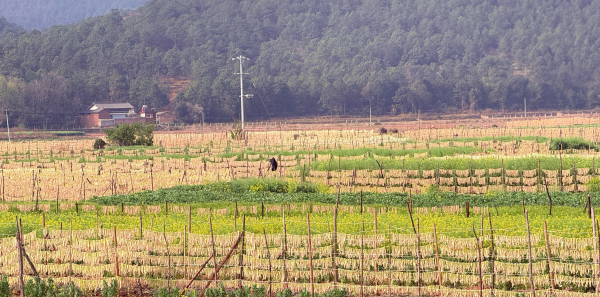 眼下,楚雄彝族自治州南华县上庄科村委会后海村处处是丰收的景象,男女老少都在忙着抢抓农时采收萝卜,田地里正在晾晒的一排排萝卜条映衬着村民的幸福笑容。