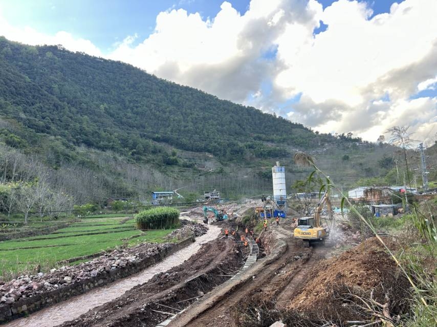 近日,在楚雄州湾河南华县段中小河流治理工程施工现场,施工人员正忙着河堤砌筑、混凝土浇筑、绑扎钢筋,施工车辆有序穿梭、机器轰鸣,建设者们保质量、抓进度,技术攻坚不断实现突破,施工机械安全运转、高效有序,呈现一派如火如荼的建设景象。