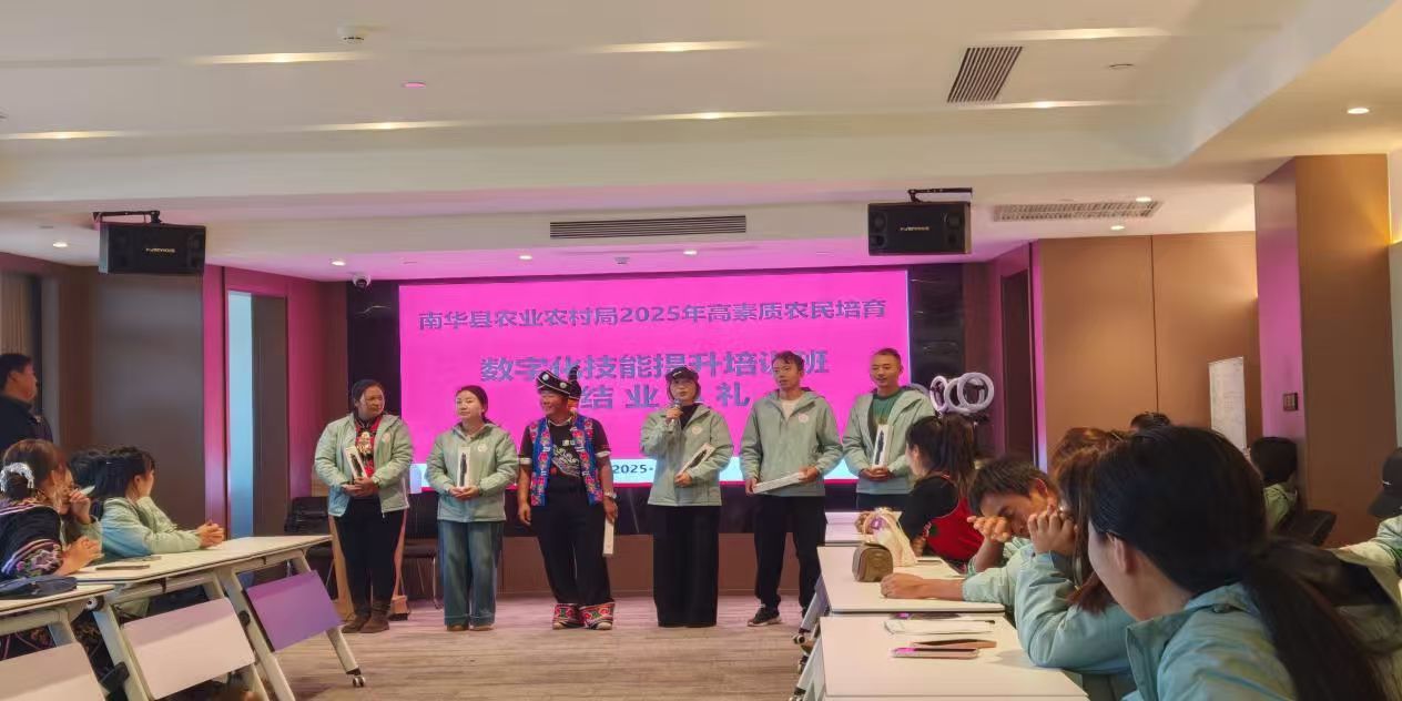 为促进农产品上行,进一步提升农民电商技能,推动南华县农村电商产业发展,南华县农业农村局以提升农民技术技能水平、产业发展能力和综合素质素养为核心目标,大力培育产业发展带头人和乡村振兴主力军,为推进乡村振兴、建设农业强县提供坚实人才保障。2025年11月底至12月初,南华县农业农村局结合本地区主导产业发展需求摸底情况及年度培育计划,遴选了52名培训对象,组织开展了为期8天的2025年高素质农民培育电商技能培训班。