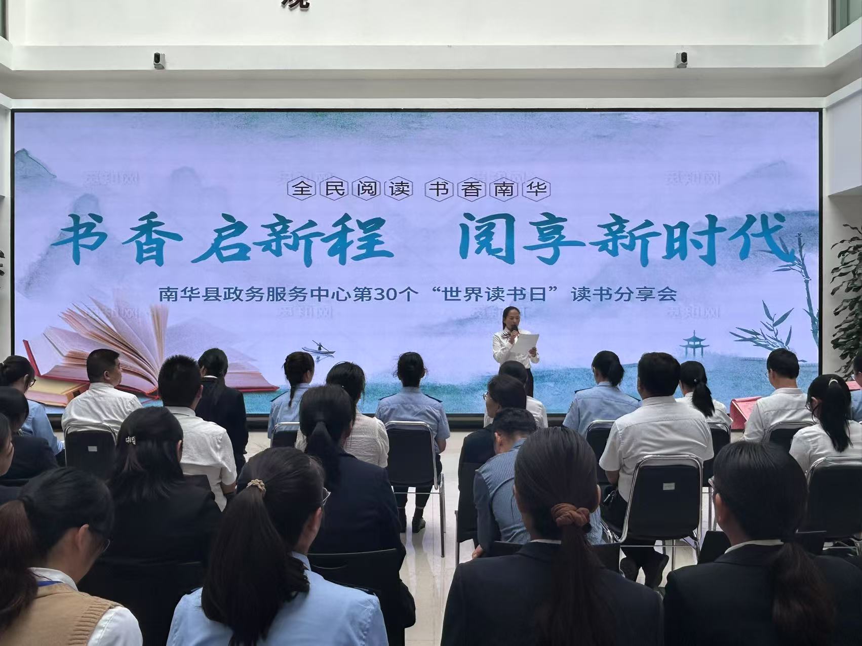 在第30个“世界读书日”,一场意义非凡的活动在南华县政务服务中心大厅(中庭)举行。此次活动以“书香润政务·礼仪暖民心”为主题,将读书与政务服务深度融合,旨在提升政务服务人员的礼仪素养,为群众提供更优质的服务。