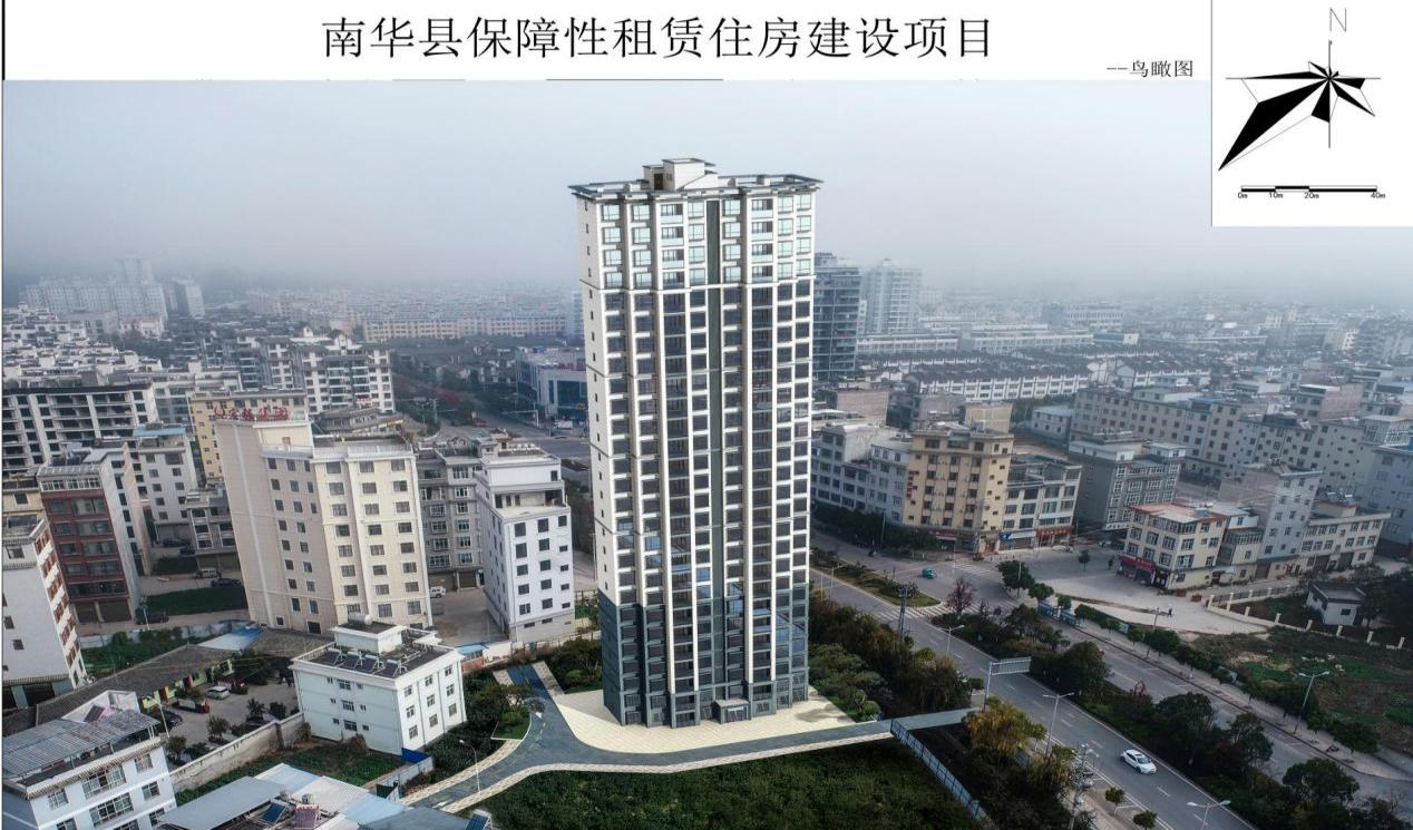 南华县保障性租赁住房暨人才公寓建设项目位于县城西北侧,北邻云南宏强集团,西邻西云社区,东邻西小河,南邻城市公共绿地,总用地面积为1046.00平方米(约1.57亩),新建1栋地下1层,地上26层共103套的高层住宅楼,总建筑面积为7636.72平方米,建筑密度为25.93%,容积率为6.84,绿地率为25.29%,总投资3500万元。住房设计两种户型,均为二室一厅一厨一卫,其中,A户型建筑面积为69.94平方米,B户型建筑面积为68.39平方米,项目建成后,可直接“拎包入住”。
