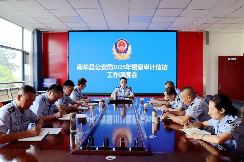 2025年8月1日下午,南华县公安局召开全县公安机关督察审计信访工作调度会,全面贯彻落实省厅、州局督察审计信访工作调度会议精神,深入分析当前督察、审计、信访工作面临的形势,查找存在的突出问题和薄弱环节,研究部署下一阶段重点任务,全力推动各项工作提质增效。