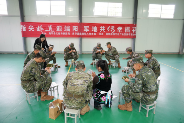 在端午节来临之际,南华县退役军人事务局携手县文化和旅游局、县彝绣文化产业发展有限公司到驻南华某部举办“粽香鱼水情,军民一家亲”双拥共建活动。