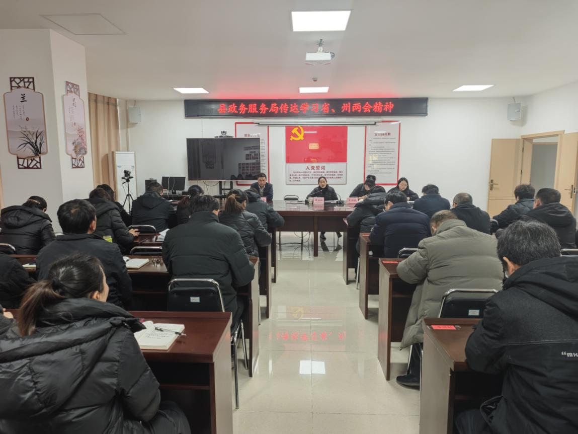 2月2日,南华县政务服务管理局召开会议,传达学习省、州两会精神,局全体干部职工参会。