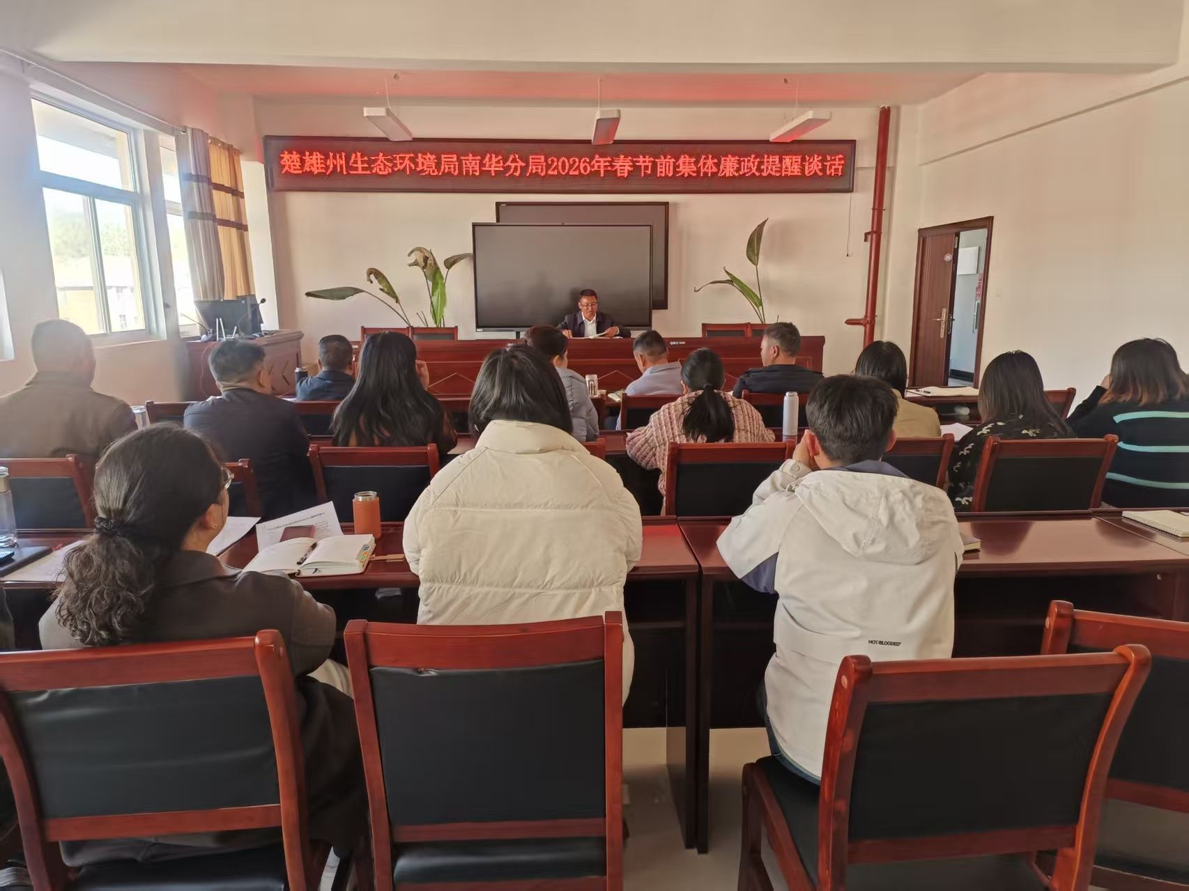 为进一步筑牢党员干部廉洁自律思想防线,压实全面从严治党政治责任,2026年2月12日,州生态环境局南华分局党组组织召开全面从严治党暨警示教育大会。