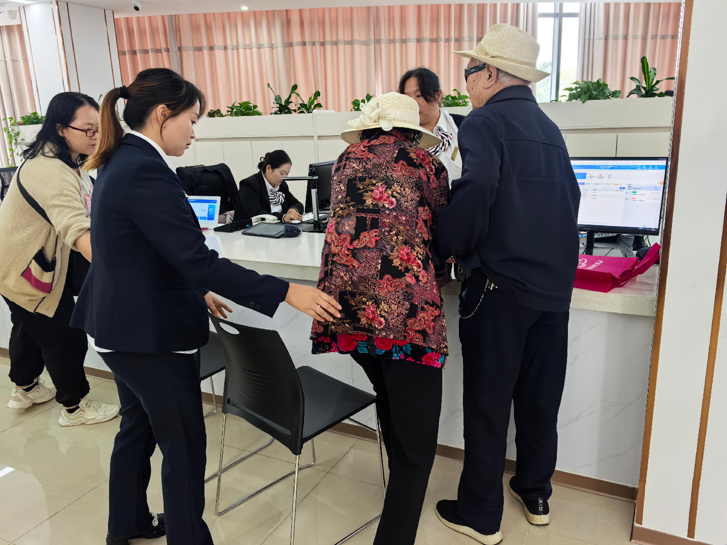 “您好,请问办理什么业务?”清晨的政务服务大厅,导引导办人员的暖心问候已然响起。作为大厅里的“贴心向导”,她们是群众办事的第一道暖心风景线,每日坚守各服务点位,练就“眼观六路、耳听八方”的本领,当群众面露疑惑便主动上前询问办事需求,精准指引办事窗口、细致讲解办理流程,耐心协助整理材料、指导自助设备操作,全力打通群众办事“第一步”。她们用热情的笑容化解陌生感,用专业的指引让群众少跑腿、少等待,为大家打造便捷顺畅的办事体验。