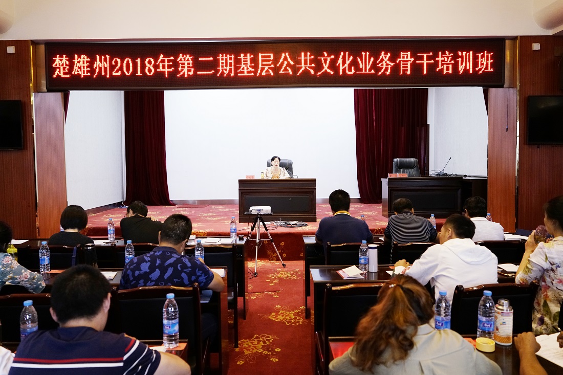 8月 21 日至23日,楚雄州2018年第二期基层公共文化业务骨干培训班在南华县举办。楚雄市、双柏县、南华县、姚安县、大姚县等5个县市文体广电旅游局分管副局长、公共文化股股长、图书馆馆长、文化馆馆长、博物馆馆长、乡镇文化站站长、全州乡村学校少年宫文化志愿者共计95人参加培训。