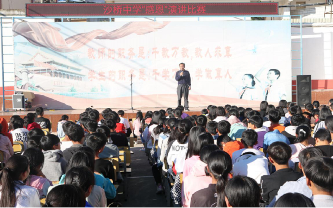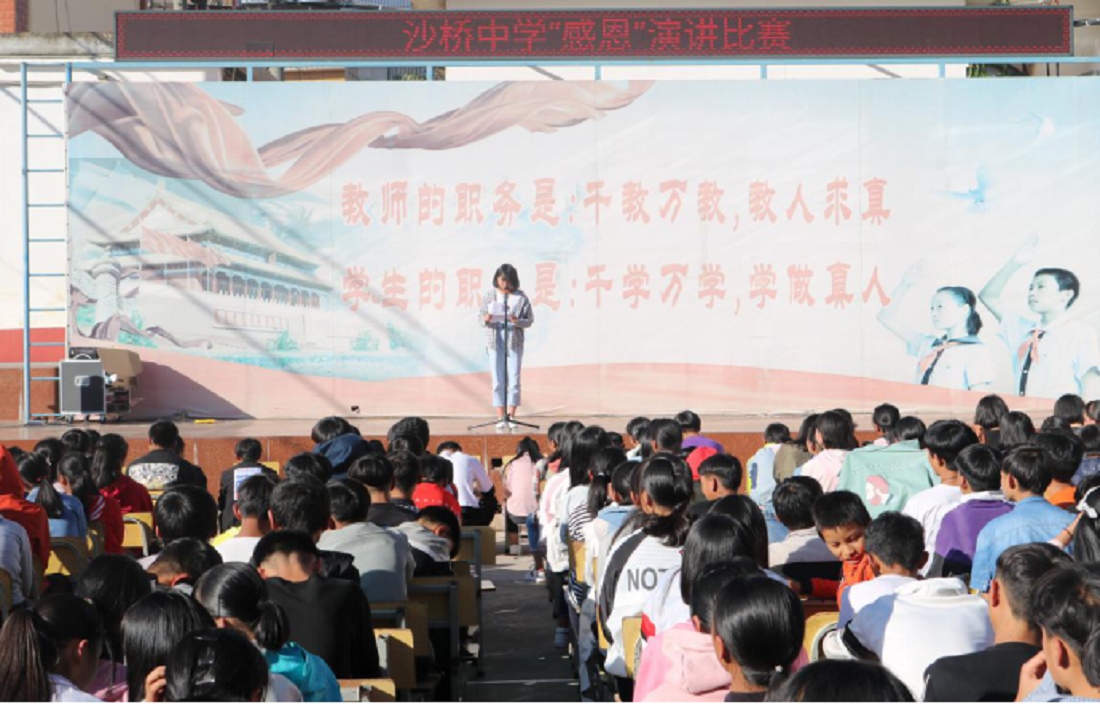 10月16日,沙桥中学全体师生在学校升旗台前举行2018年“感恩的心”演讲比赛。
