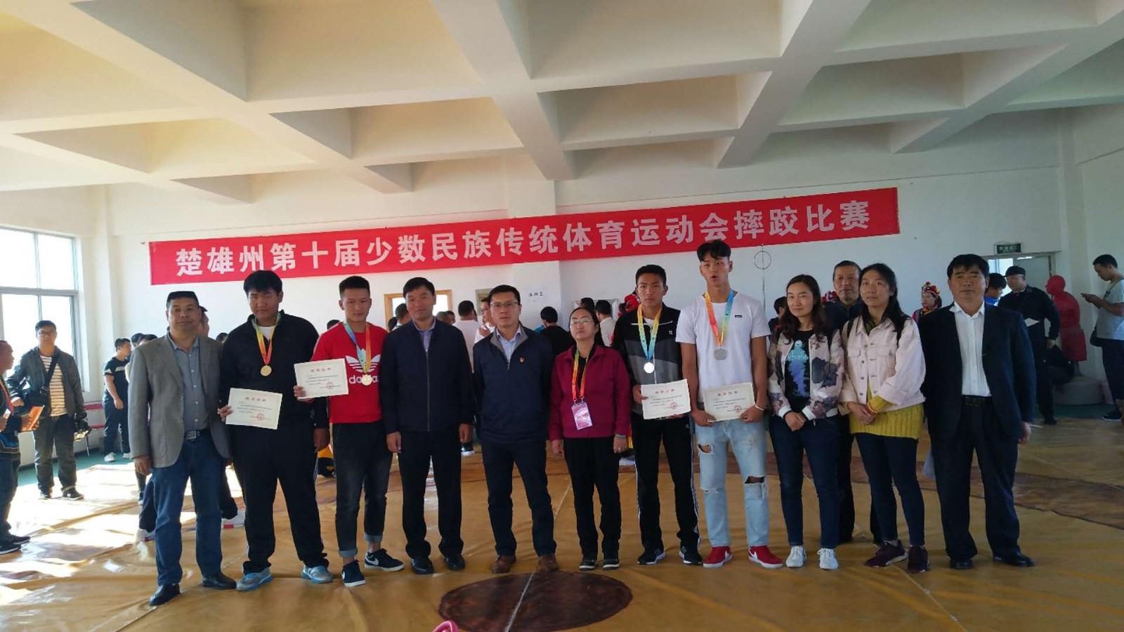 金秋十月,硕果累累,在刚刚闭幕的楚雄州第十届少数民族传统体育运动会上,南华县57名运动健儿,带着南华人民的淳朴、热情、豪迈,代表着全县24万人民拼搏民运会赛场,参加陀螺、射弩、高脚竞速(双拐)、板鞋竞速、蹴球、彝族式摔跤6个竞赛项目,共荣获15金12银8铜、3个第四名、2个第五名、5个第六名、2个第八名,团体总分316分,以团体总分第一、金牌总数第一、奖牌总数第一的成绩名列全州民运会榜首,4个表演项目也荣获1金2银1铜的好成绩,南华县代表团还荣获本届民运会优秀组织奖、体育道德风尚奖。