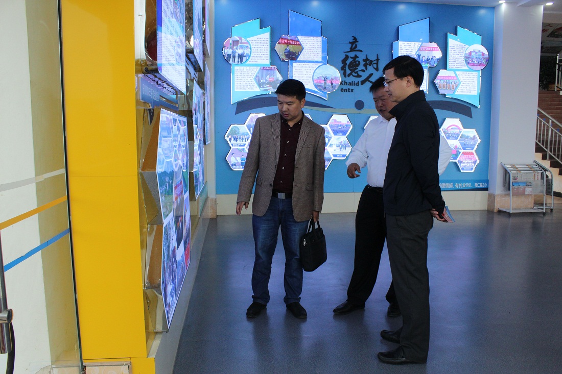 南华民族中学党总支书记、校长阿文东携班子成员到校门口热情迎接并带领客人们参观校园,阿文东校长从办学理念、校园建设、队伍建设、德育工作、教育教学、精细化管理等方面向各位领导详细介绍了学校的办学情况和取得的成绩,赵副书记对南华民族中学办学以来取得的成绩给予肯定,并对学校建设、办学品质、教科研、勤工俭学、民族团结进步教育等方面的工作给予赞许。大家还一同参观了学校的勤工俭学基地、校史馆、师生书画展、机器人实验室、食堂等各功能场所。接着在五楼会议室进行座谈,座谈中赵副书记与吕局长,与阿校长就提升县域内教育均衡发展水平、提升教育教学质量、提升教师专业化水平、教师培训等方面做了深入的交流和探讨。