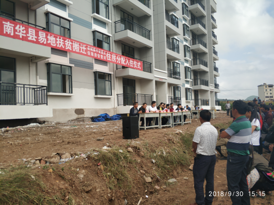 2018年9月30日,由县人民政府组织,县委副书记杨梦婷、县人大常委会副主任周建东,县人民政府副县长李俊,县政协副主席何勇及涉及部门主要领导参与,在南华县城集中安置点前组织县城集中安置点及保障房安置点的搬迁户开展住房抽签仪式。在抽签仪式上,县委副书记杨梦婷作了讲话并致词。此次纳入分配的住房共206套,其中县城集中安置点172套,保障房安置点34套。户型分为安置二人户、三人户、四人户、五人及以上户四种户型,经过紧张而有序的抽签工作,所有住房全部分配完毕,目前正在安排搬迁户入住工作。(南华县发改局 崔庆毓)