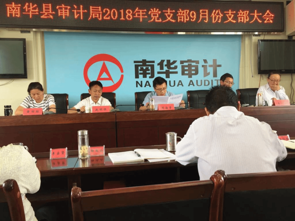 9月25日县审计局召开了2018年9月党支部大会,会议传达学习了相关文件精神、支部书记讲党课、开展党员积分自评、支部书记安排支部工作等议程,会上党组书记周海章作了相关要求:一是传达学习各级组织工作会议精神,要求全体干部职工深刻领会会议精神;二是深入学习《中国共产党纪律处分条例》、《中华人民共和国监察法》,切实增强规矩意识,自觉规范言行;三是传达学习《中共云南省纪律检查委员会关于段跃庆、侯新华严重违纪违法案件的通报》,要求深刻汲取案件教训,警钟长鸣,筑牢防腐底线;四是推进党支部规范化建设,充分发挥党员先锋模范作用。