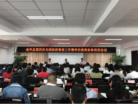 为深入学习贯彻国务院和省政府第四次全国经济普查电视电话会议及省、州相关会议精神,全面部署第四次全国经济普查工作,9月1日,南华县召开第四次全国经济普查工作会暨单位清查业务培训会。县人民政府副县长邱峰出席会议,全县22个第四次全国经济普查领导小组成员单位、10乡镇分管领导及业务人员、县统计局全体干部职工共88人参会。