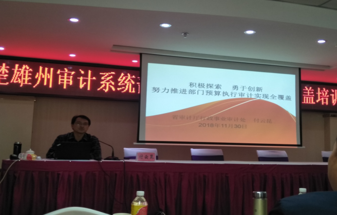 11月30日下午,州审计局特邀省审计厅行政事业处付云昆处长对我州审计干部预算执行全覆盖审计业务及审计技能进行了专业培训,会上付云昆处长从五个方面对预算执行审计全覆盖工作作了详细讲解、创新意义的重大阐述及为我州预算执行审计全覆盖提出8个方面的意见建议: