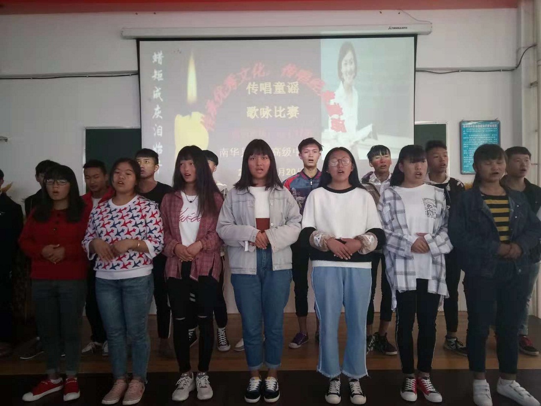 南华县职业高级中学是一所以传授职业技能为办学宗旨的学校,历来重学生综合素质的培养,实现学生德智体美劳全面发展,在对学生进行专业技能强化教育中,注重其他素养的训练,在开展德育美育教学中,以喜闻乐见的童谣传唱为起点,开展丰富多彩的校园文化建设。