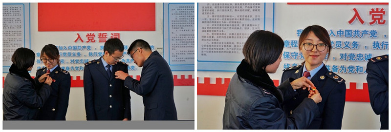 “忆初心”。活动上,两名预备党员汇报了自己在预备期的表现,并表明自己的态度和决心,经党小组代表发表意见和支委会代表发表意见后,进行当场票决,两位预备党员均以全票通过予以转正;随后两名期满的入党积极分子举行入党宣誓仪式,并由刚刚转正的两名党员为他们佩戴党员徽章。鲜红党旗下的宣誓是对党的事业奋斗终身的信心和决心,党员徽章由眼前转正的同志佩戴到胸前更是一种传承和激励。