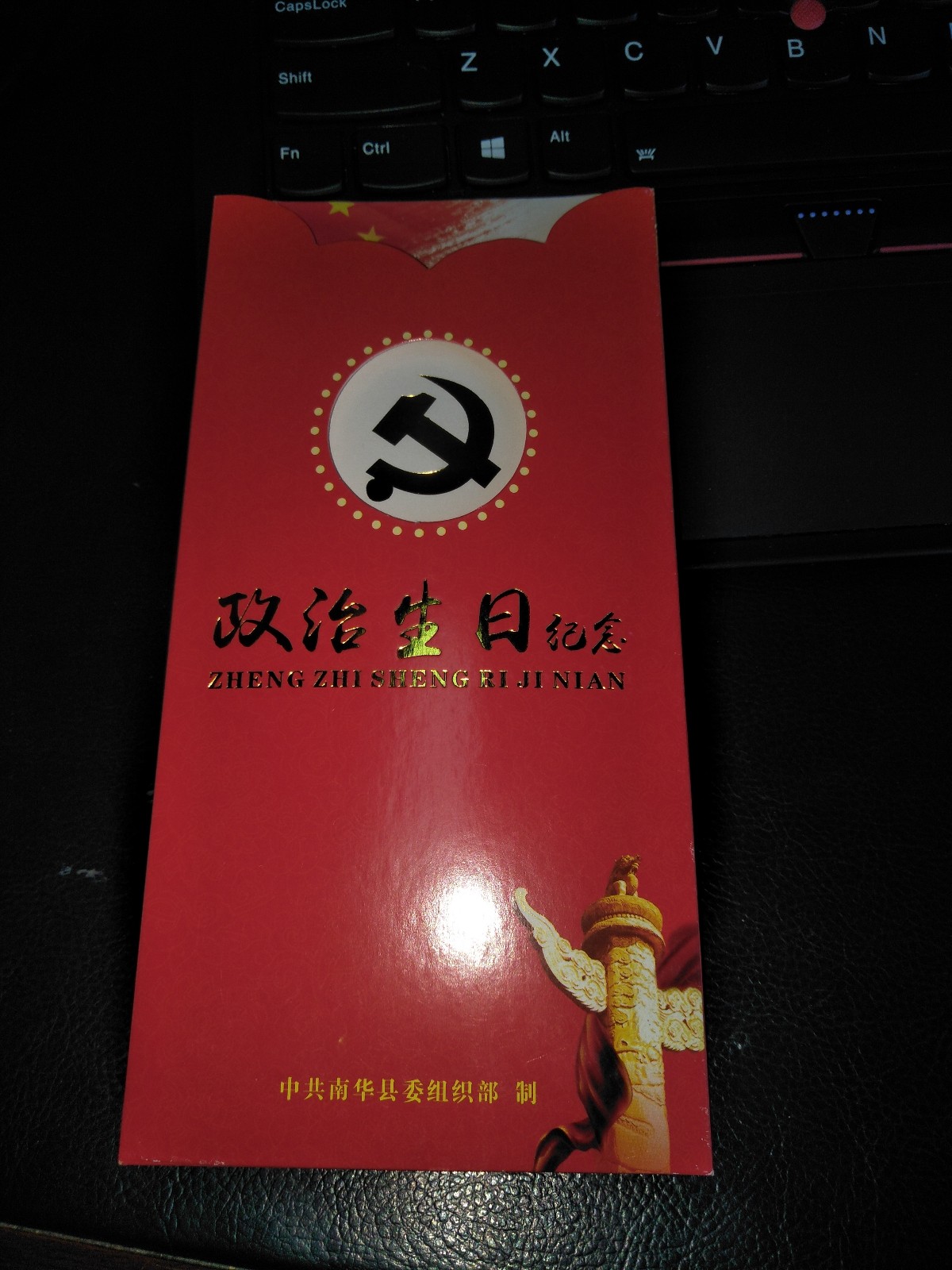 刚进办公室,我局党支部委员杨成山同志就将一个红彤彤的政治生日纪念卡送到我手里,一份暖意,一份责任。