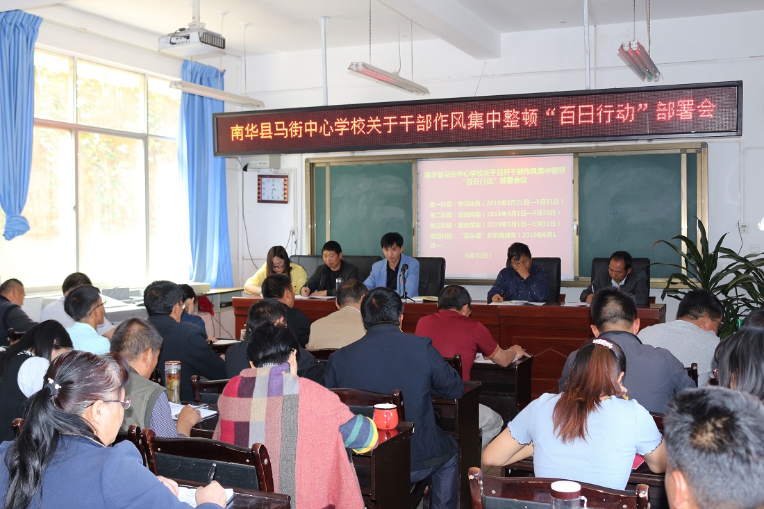 4月11日下午,南华县马街中心学校党支部开展全面从严治党“五个年”工作和“十个一”警示教育推进会暨干部作风集中整顿“百日行动”部署会议,会议在马街中心学校会议室召开。会上,马街中心学校党支部书记罗绍先同志领学了《南华县教育体育系统全面从严治党“五个年”工作和“十个一”警示教育实施方案》和《南华县教育体育系统干部作风集中整顿“百日行动”实施方案》。同时结合学校实际,对全面从严治党“五个年”工作和“十个一”警示教育工作及干部作风集中整顿“百日行动”工作安排部署: