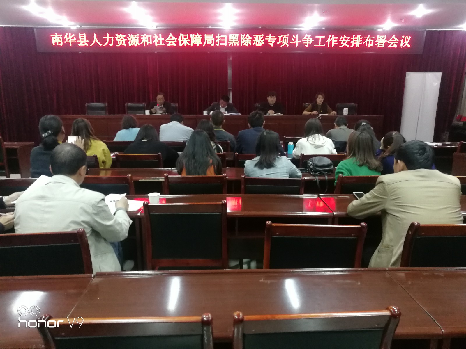 扫黑除恶专项斗争工作开展以来,南华县人社局提高政治站位,统一全局干部职工思想认识,按照省、州、县党委关于扫黑除恶专项斗争工作的安排部署,严格按规定动作,扎实开展人社行业领域扫黑除恶专项斗争工作,把扫黑除恶专项斗争工作作为当前和今后一段时期一项重大政治任务认真加以落实,确保人社领域扫黑除恶专项斗争工作向纵深推进。