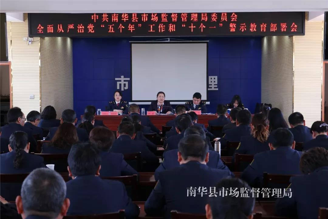 3月29日下午,南华县市场监督管理局召开了全面从严治党“五个年”工作和“十个一”警示教育部署会,局机关、龙川、沙桥、雨露、五街监管所干部职工共50余人参加会议。