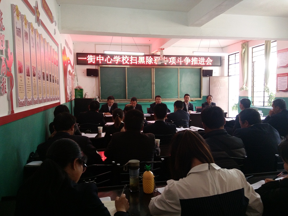 为进一步加大扫黑除恶专项斗争的宣传力度,对青少年学生进行法制教育,提高自我约束力,自我保护能力,预防和减少违法犯罪行为,防范黑恶势力渗入校园,一街中心完小于近期邀请一街乡派出所民警同志,利用召开家长会时间给全校师生及家长进行了一场扫黑除恶专项斗争法制教育活动。