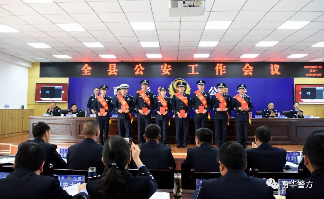 2019年3月11日,南华县公安局召开全县公安工作会,县委常委、政法委书记张志洪,县人大常委会副主任陈金禹,县人民政府副县长、县公安局党委书记、局长张惊雷,县政协副主席赵济,县人民检察院检察长王华,县司法局 局长王正武出席会议。