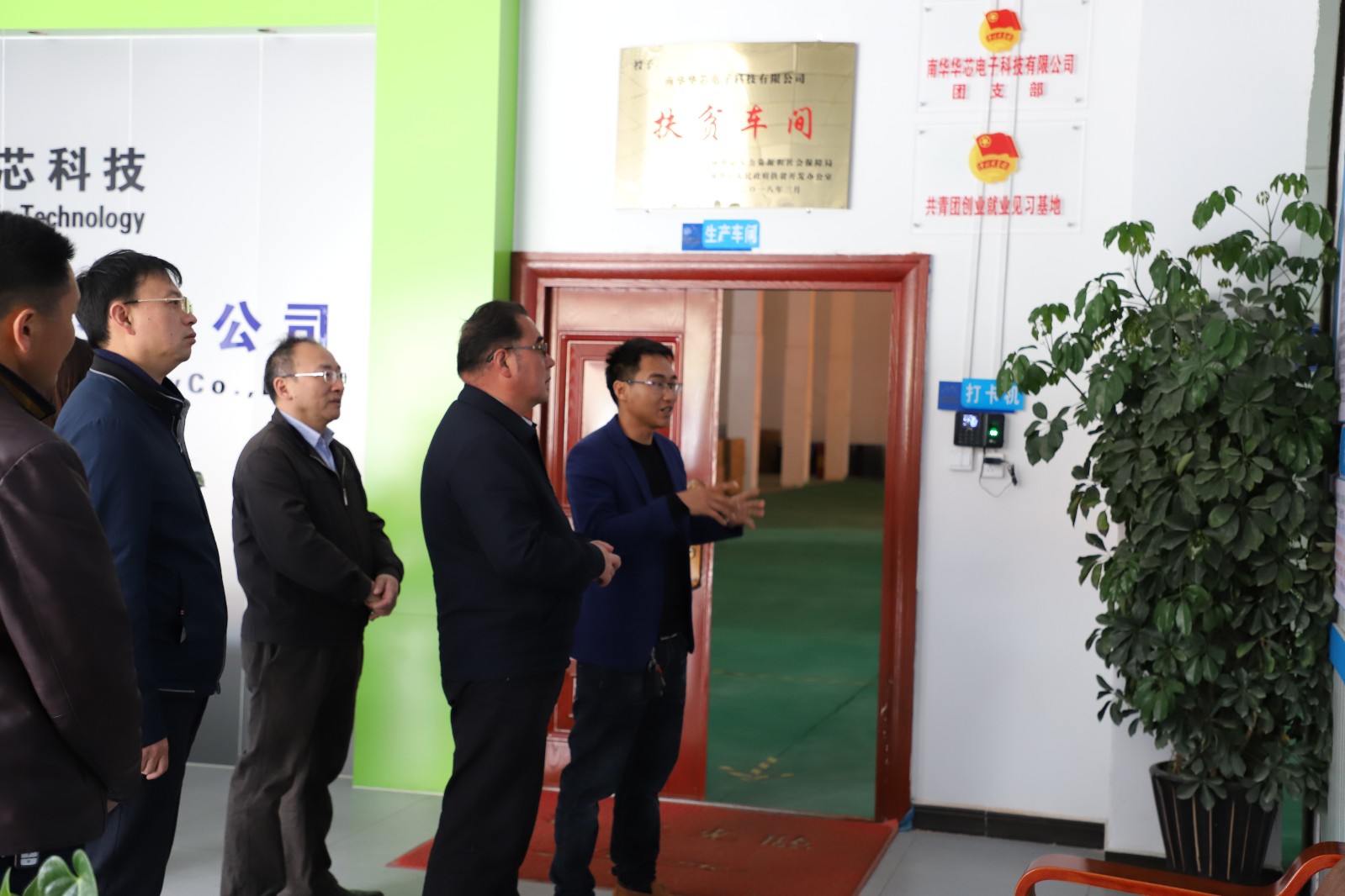 在华芯电子科技有限公司,当杨厅长得知朱照福建厂起初从自家偏僻的乡村小院发展到县城建厂并发展壮大后,杨厅长夸赞朱照福“白手起家、有志青年、创业典范”。强调企业发展,质量是核心,鼓励华芯电子科技有限公司进一步弘扬工匠精神,创建自己的质检体系,争取早日拿到企业产品“身份证、通行证”,同时勉励华芯电子科技有限公司要继续加速发展,帮助更多的贫困人口脱贫致富。