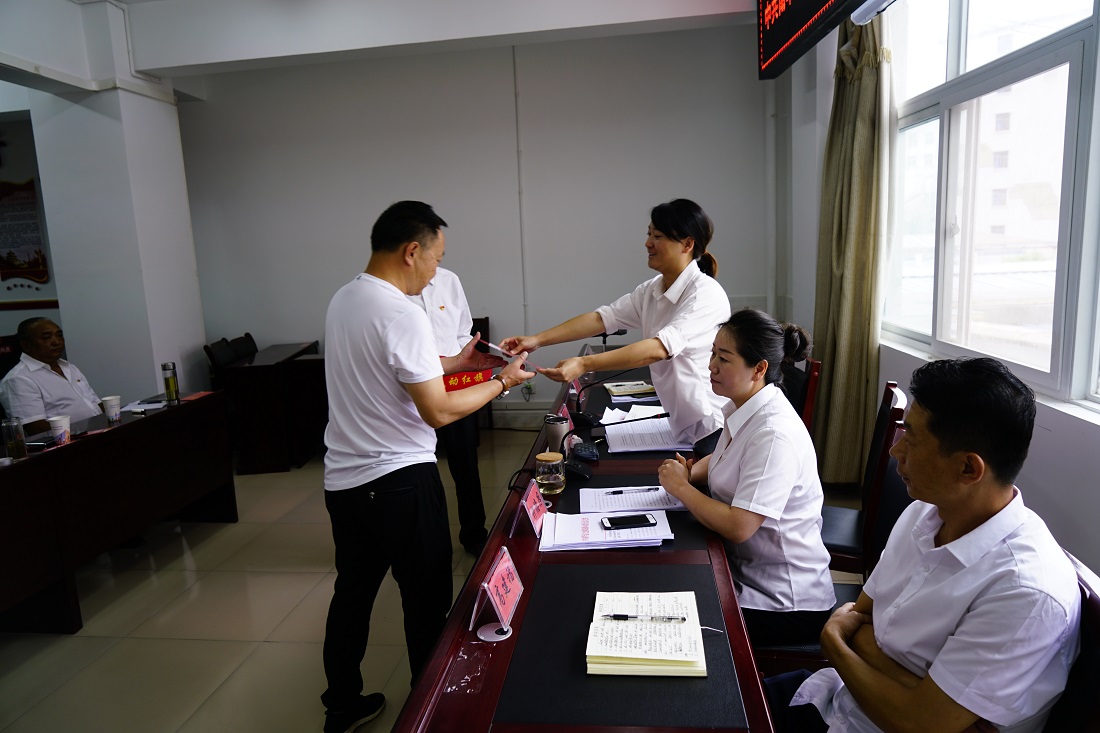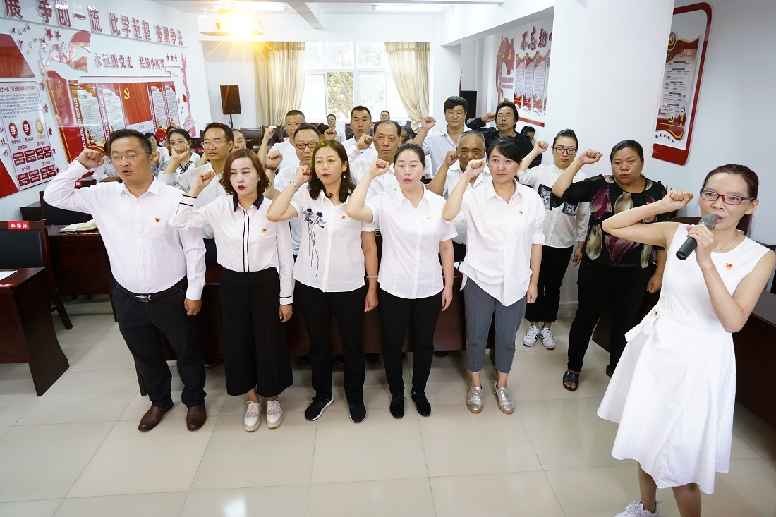会议在庄严的国歌声中拉开帷幕,全体党员面对鲜红的党旗重温了入党誓词。