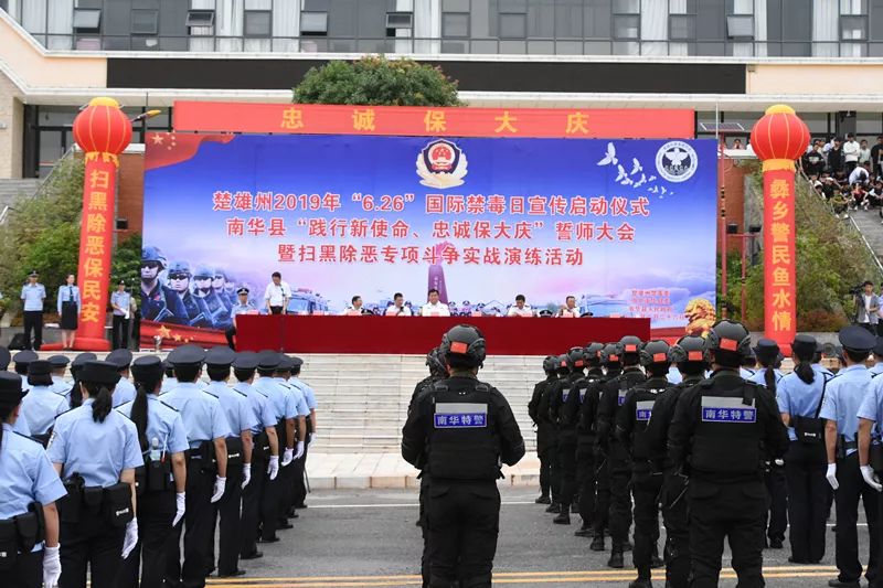 今年是第32个“6.26”国际禁毒日。为全面展示楚雄州禁毒成果,加大毒品预防教育和禁毒宣传工作力度,增强全民禁毒意识和抵制毒品能力,构建和谐平安楚雄。6月26日上午,楚雄州在滇西要道、迤西咽喉、无毒巩固县南华县举行以“健康人生,绿色无毒”为主题的2019年“6.26”国际禁毒日宣传活动启动仪式。