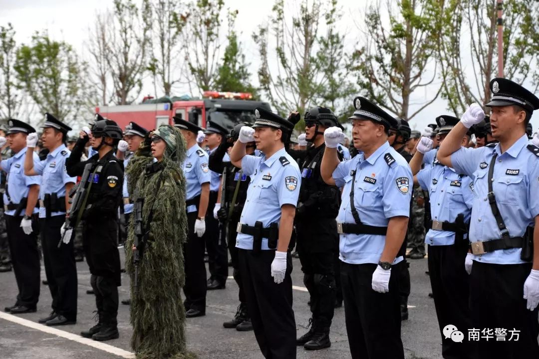 实战演练结束,南华县人民政府副县长、县公安局党委书记、局长张惊雷带领演练队伍庄严宣誓:“对党忠诚,服务人民,执法公正,纪律严明,以最硬的措施、最佳的状态,全力以赴,决战决胜,坚决打赢70周年大庆安保攻坚战!”庄严的宣誓,是一次信仰的再提纯、信念的再坚固、使命的再强化。南华公安必将时刻不忘初心,以忠诚铸警魂,不负党和人民的期望与重托。
