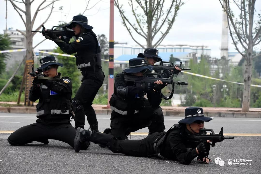 南华县公安局特警大队首先帅气展示了警务技能、防爆棍、战术等方面的演练。随后,为了让群众能够更加直观的了解公安机关在解决突发性暴力事件的处置,进行了包括人员密集场所暴力警情处置、定点抓捕、车辆反劫持、高危车辆设卡拦截、初战快速控火、立体突击攻坚等情形的综合警情演练,充分展示了南华公安在关键时刻拉得出、冲得上、打得赢的 “公安铁军”形象。