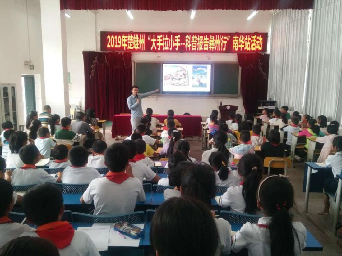 5月22日下午,“2019年楚雄州‘大手拉小手—科普报告彝州行’南华站活动”在南华县龙川小学报告厅举行。参加此次活动的有楚雄州科协、南华县科协的相关分管领导;龙川小学科创教师;龙川小学四年级学生及班主任、搭班教师。