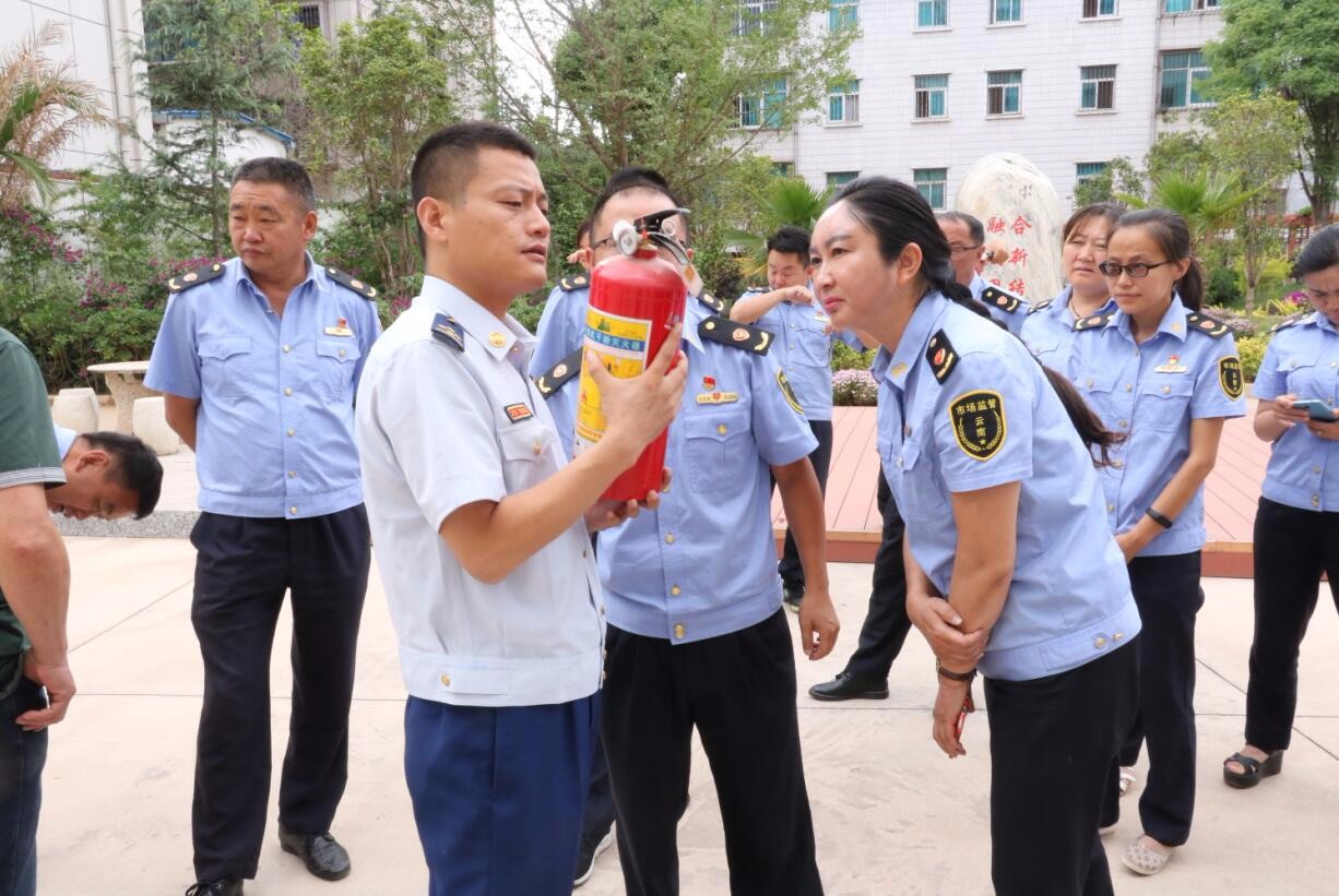 培训会上,南华县消防救援大队原通光参谋(一级指挥员)以他丰富的专业理论知识和多年从事消防安全工作的实战经验,借助PPT课件演示,现场提问互动等形式,从火灾的基本常识、火灾的预防、常见的消防设施、火灾逃生自救4个方面进行讲解。会后,消防人员通过现场操作的形式讲解、示范灭火器的使用方法,并指导干部职工在该局机关大院内现场操作灭火器,提高灭火技能。