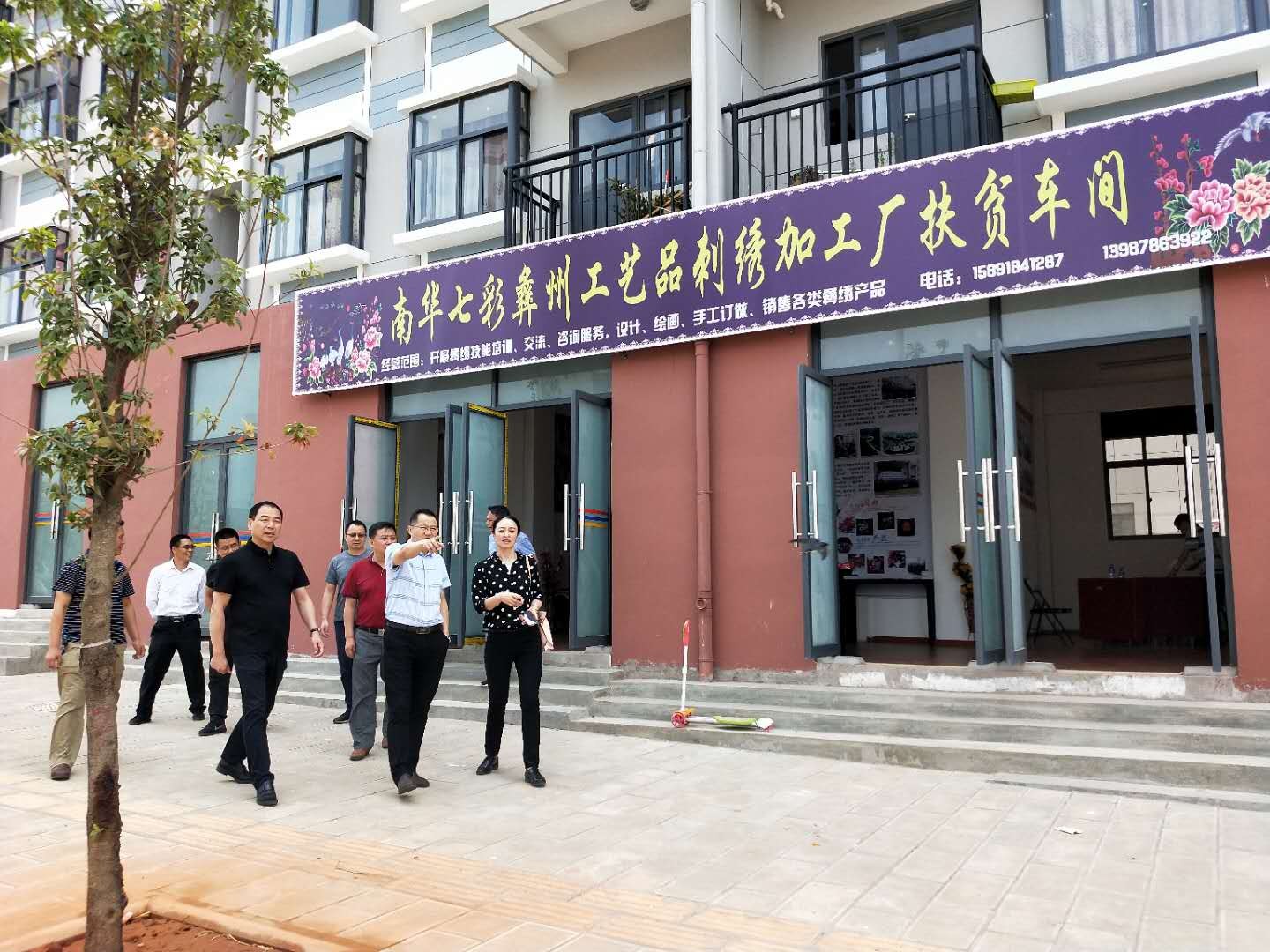 在南华易地扶贫搬迁安置点扶贫车间,调研组一行详细了解南华七彩彝州刺绣工艺加工厂扶贫车间生产加工、销售及用工等情况,了解到企业以合作社的方式用工达886人,其中吸纳建档立卡贫困劳动力224人,目前,又将“就业扶贫车间”延伸到了县易地扶贫搬迁安置点,将吸纳最少50名易地搬迁贫困劳动力在家门口就业后,宣程指出,南华彝绣产业带动就业人数多,人社部门要加大政策扶持力度,在帮助企业签订劳动合同规范用工的同时,加大企业彝绣技能提升培训力度,带动更多的贫困劳动力就业。