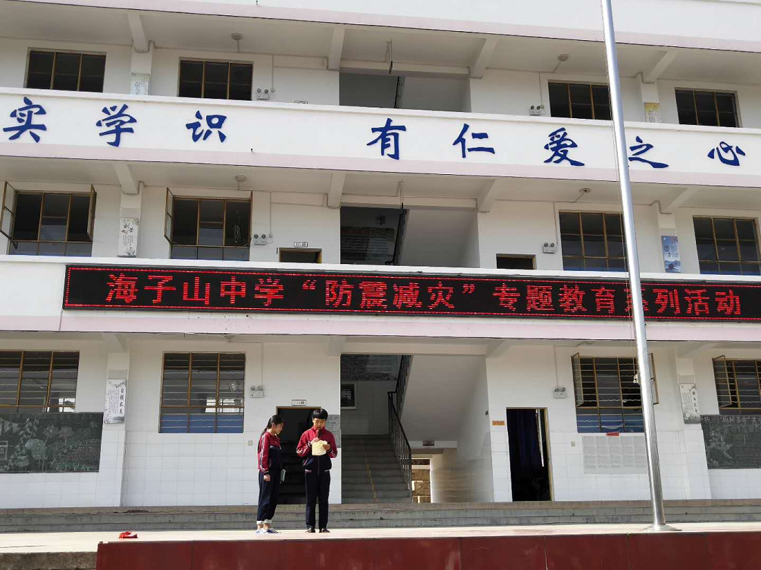 5月13日,海子山初级中学进行防震减灾应急疏散演练。