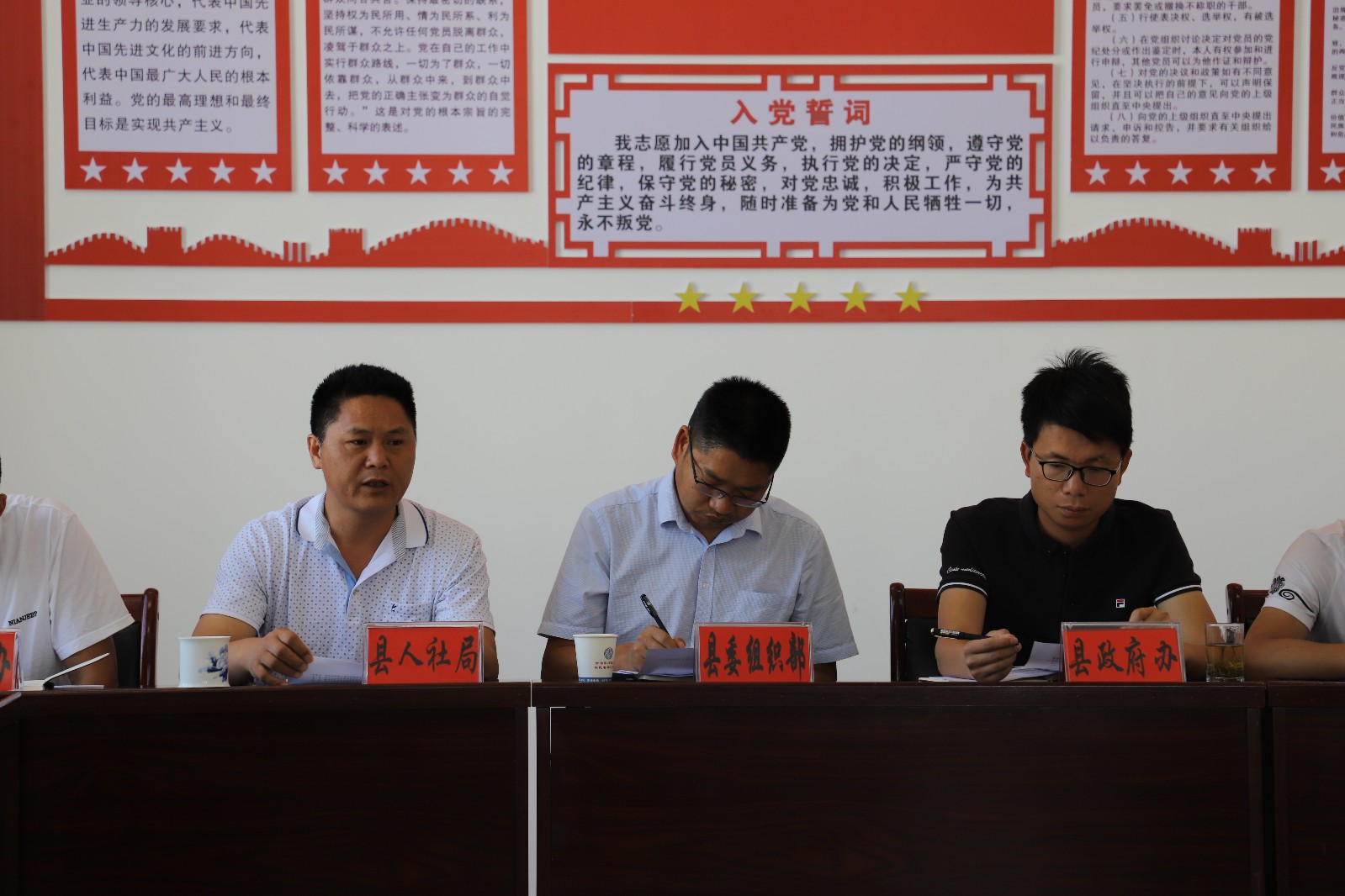 5月17日上午,我县在县人社局五楼会议室召开2019年事业单位公开招聘考试联席会议,县级14家人事考试领导小组成员单位分管领导、县级考点南华一中主要领导及考务工作负责人、县人社局主要领导、分管领导及相关股室中心负责人共计36人参加了会议。会上,县委组织部副部长、县委编办主任苏永友作动员讲话并作工作要求;县委组织部副部长、县人社局党组书记、局长张问高对2019年事业单位公开招聘笔试工作作全面安排;县级14家领导小组成员单位分别作表态发言。