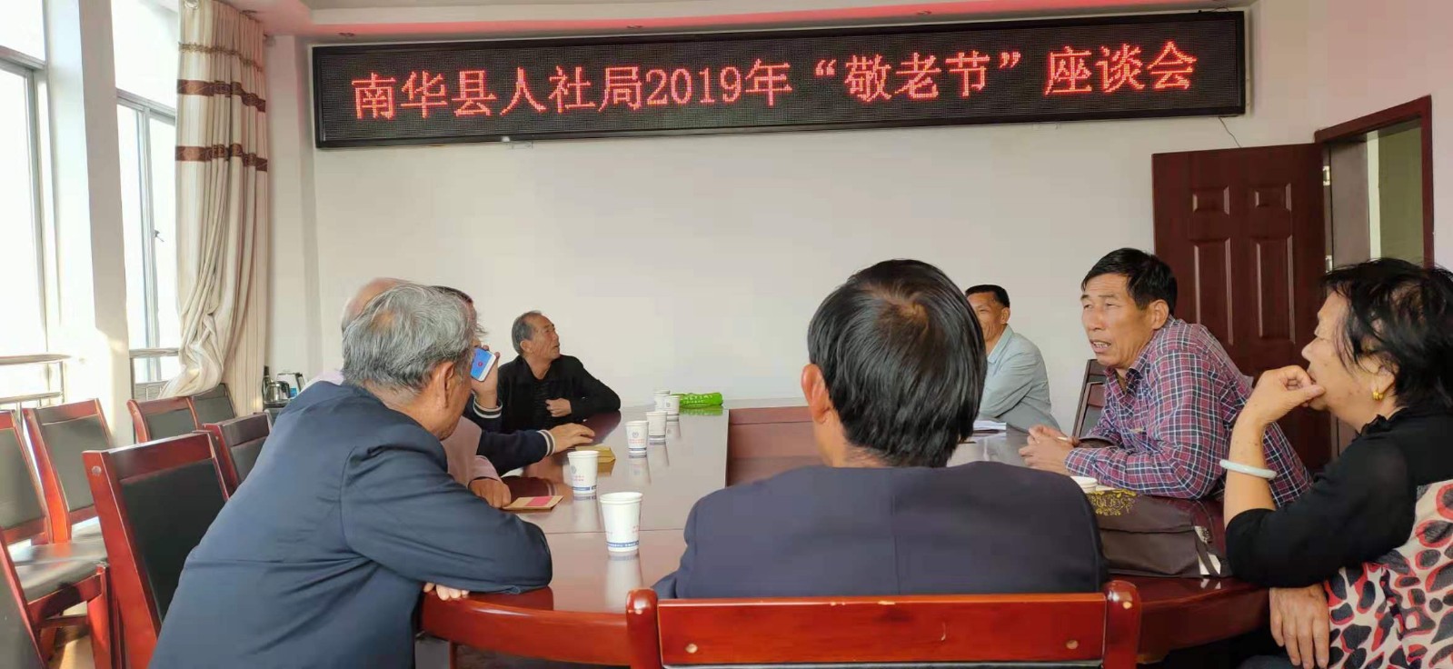 为弘扬中华民族尊老敬老的传统美德,结合正在开展的“不忘初心、牢记使命”主题教育,让退休职工过一个愉快、温馨的节日,敬老节前夕,县人社局12位退休干部在局四楼小会议室欢聚一堂,同庆重阳佳节,共贺新中国成立70华诞。