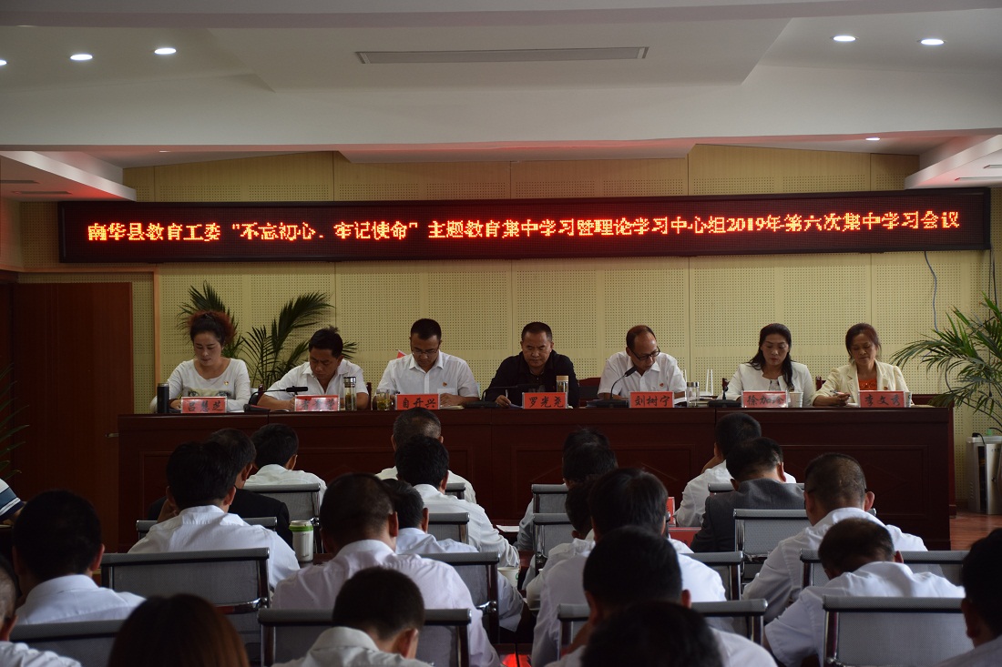 9月30日,南华县教育工委开展“不忘初心、牢记使命”主题教育第一次集中学习暨教育工委理论学习中心组2019年第六次学习会议,会议邀请县委第九巡回指导组领导到会指导;县教育工委、县教育体育局党政班子成员,局机关党员干部职工;各党总支(支部)书记、校(园)长共计80余人参加了会议。