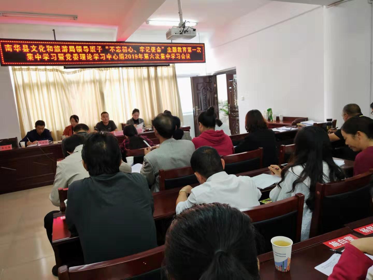 9月30日,南华县文化和旅游局召开领导班子“不忘初心、牢记使命”主题教育第一次集中学习暨党委理论学习中心组2019年第六次集中学习会议,县委第十巡回指导组到会指导。