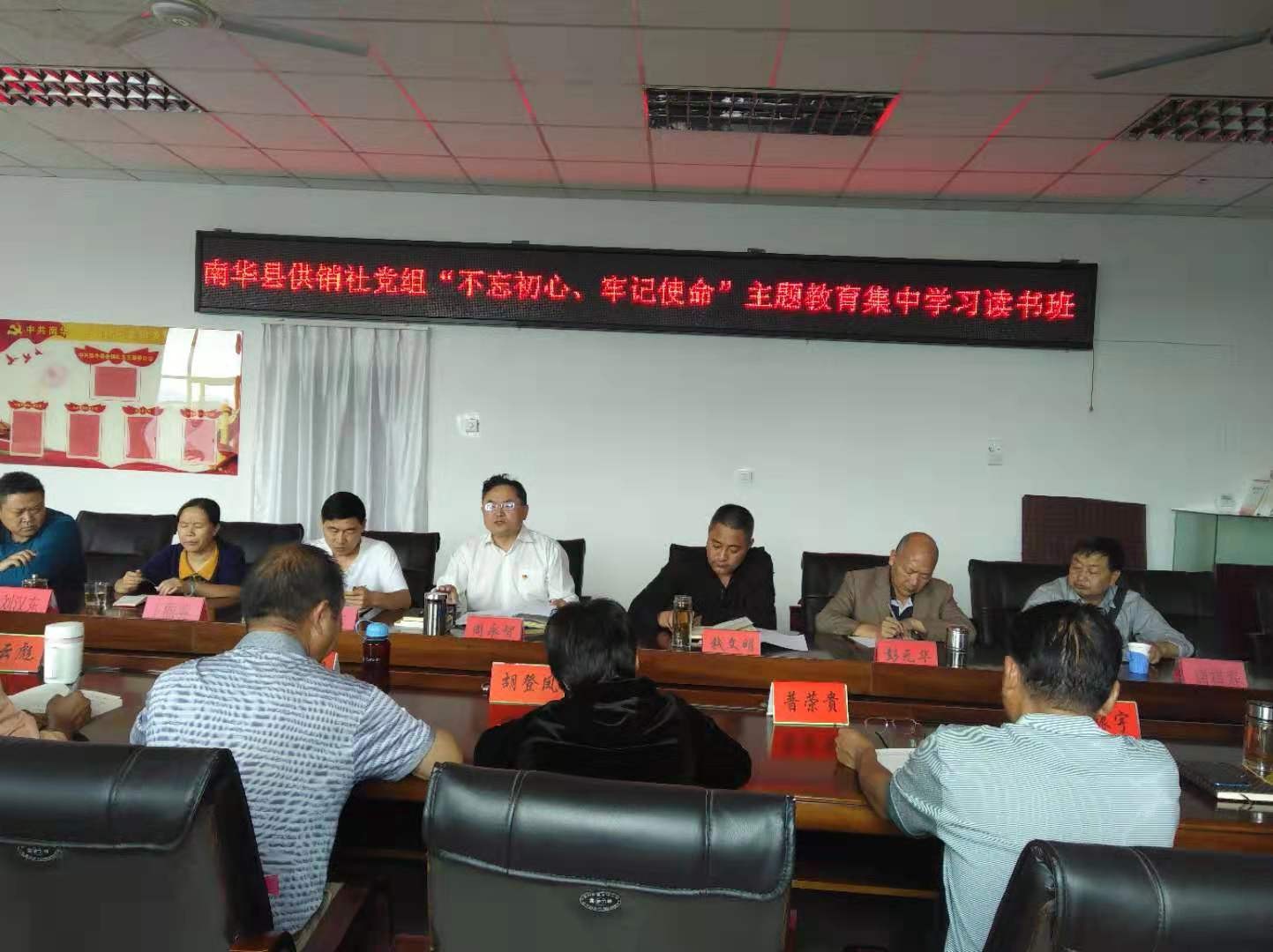 9月30日下午,南华县供销社党组班子“不忘初心、牢记使命”主题教育第一次学习读书班正式开班,党组书记、理事会主任作开班动员讲话。县委第十巡回指导组组长张卫鑫、成员王丽英到会作专题指导。