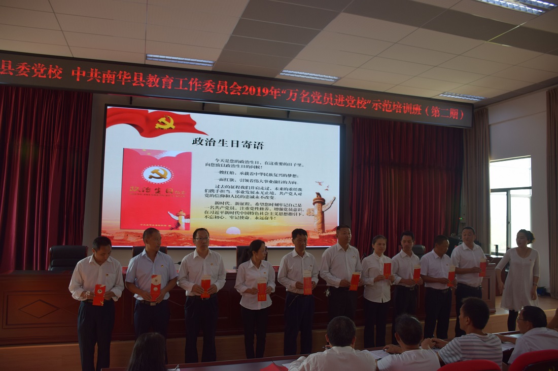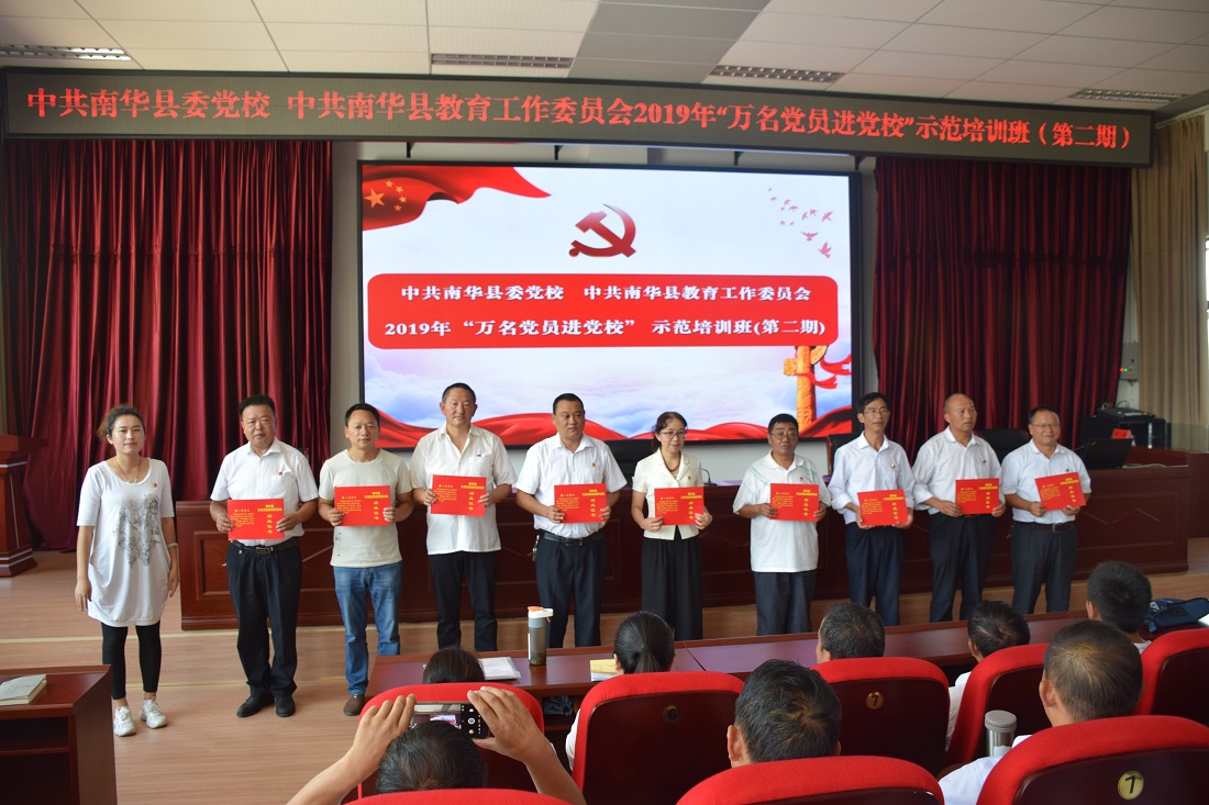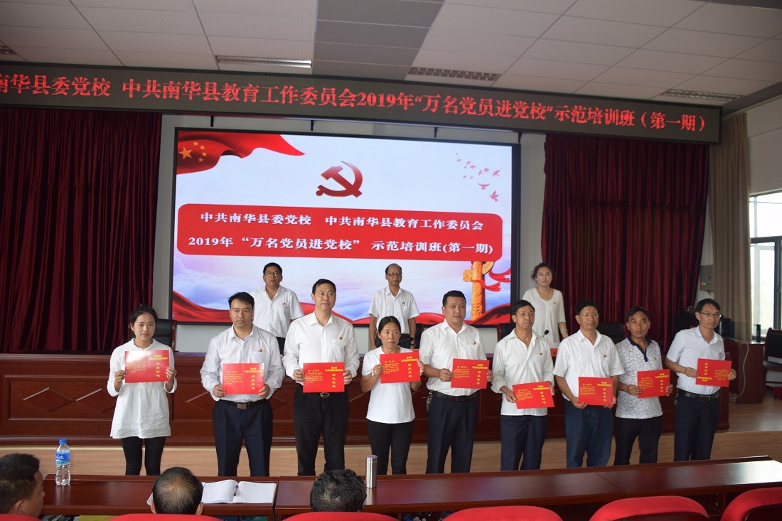 通过举办“万名党员进党校”培训班,进一步全面提高党员教师的整体素质,让党员教师用习近平新时代中国特色社会主义思想武装头脑、指导实践、推动工作,充分发挥党员教师的先锋模范带头作用,不断提高党组织书记和党员教师立德树人、教书育人的能力,促进抓好党建促教育教学质量提升,努力办好人民满意的教育。(南华县教育工委 吕慧芝)