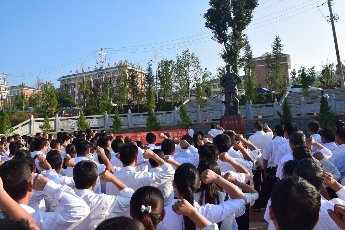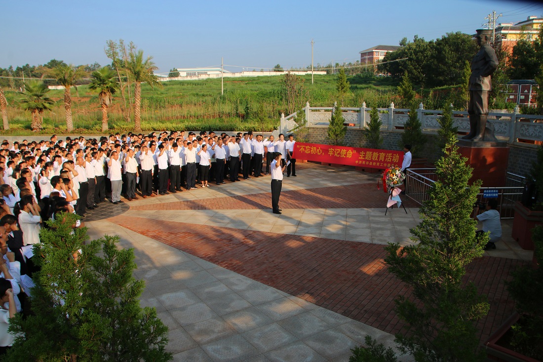 培训班于8月12日上午在湿地公园张舫烈士铜像广场开展“不忘初心、牢记使命”主题教育拉开序幕;开班仪式上党员共唱红歌《没有共产党就没有新中国》《我宣誓》,集体诵读《中国共产党章程》党员义务。县教育工委书记吕剑锋同志作了开班动员讲话,并以《不忘初心、牢记使命,办好南华人民满意的教育》为题给参训党员教师上党课。