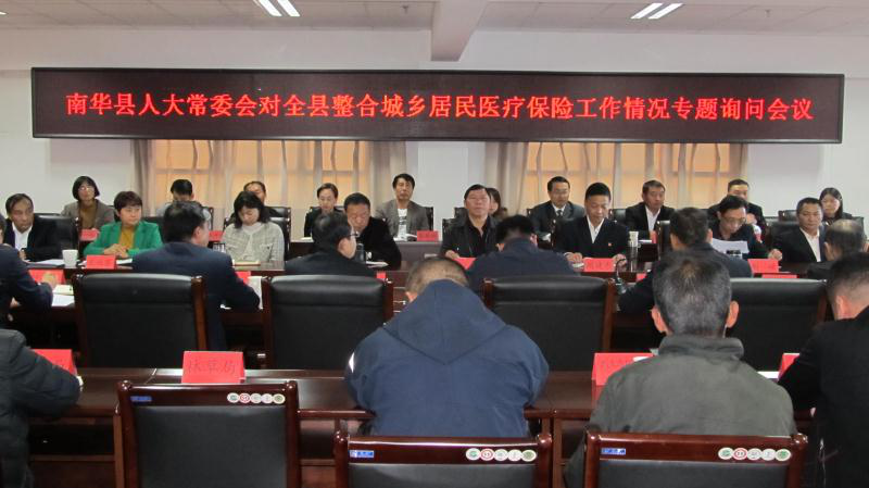 会议听取了县人民政府关于南华县整合城乡居民基本医疗保险工作情况的汇报,部分县人大常委会组成人员就参保缴费、医保基金监管、异地就医结算、特殊病慢性病门诊待遇申报、大病保险报销标准、社会保障卡遗失补办等群众关心关注的问题进行面对面询问。
